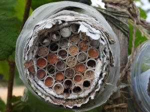 – les abeilles solitaires nichant dans des nichoirs posés en bordure de parcelles,