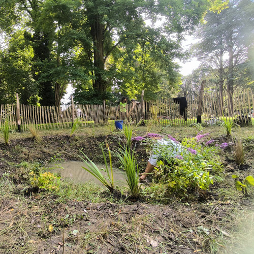 • création de mares création de yourtes en saule vivant, de parcours psycho-moteurs et sensoriels semis de prairies fleuries